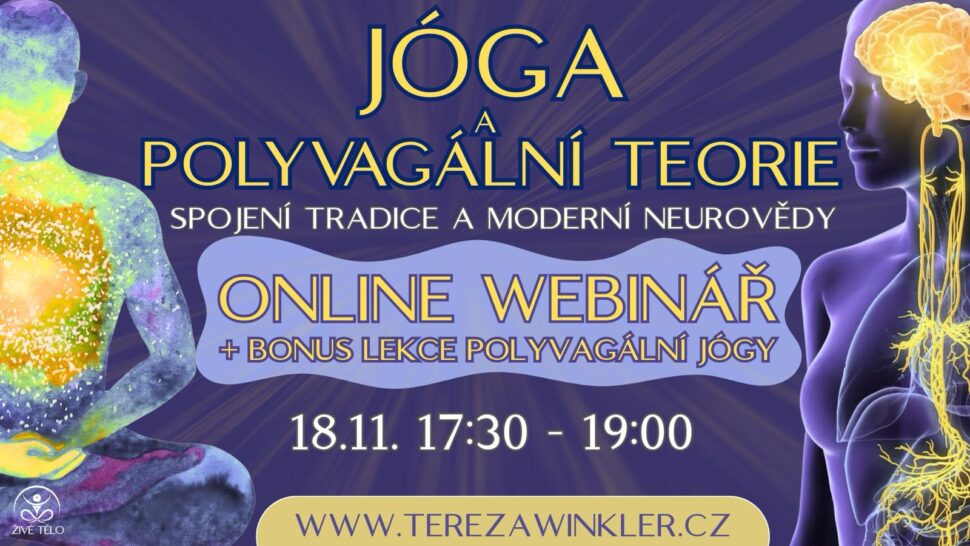 Webinář propojuje prastarou praxi jógy s aktuálními poznatky polyvagální teorie, aby účastníkům ukázal, jak dech, ásany a vnitřní pozornost ovlivňují nervový systém, emoce a schopnost regulace. Přednáška stručně představí základy polyvagální teorie (funkce bloudivého nervu, autonomní modulace, koncept bezpečného sociálního zapojení) a prakticky ukáže, jak jógové techniky cíleně podporují aktivaci ventrálního vagového systému a zlepšují odolnost vůči stresu. Účastníci získají srozumitelné teoretické východisko i jednoduché, bezpečné cvičební a dechové postupy vhodné pro osobní praxi nebo začlenění do vedených hodin.