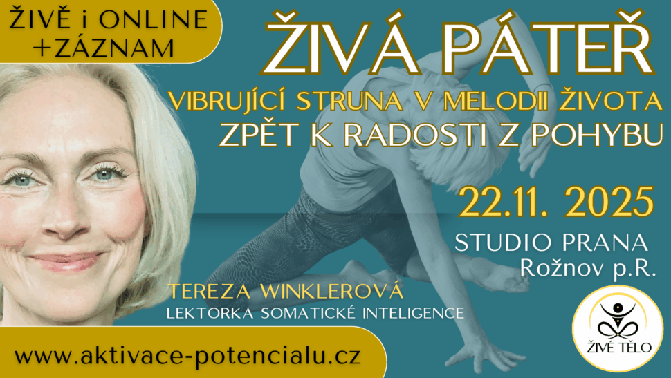 Workshop nabídne praktický a somatický přístup ke zkoumání páteře jako centra pohybu, stability a vyjadřování. Skrze vědomé pohybové sekvence, dechová cvičení, jemné mobilizace a senzomotorické zkoumání si účastníci prohloubí citlivost těla (body awareness), naučí se bezpečné vzorce pohybu a získají jednoduché nástroje pro uvolnění napětí a zlepšení držení těla v každodenním životě. Interaktivní kombinace teorie, demonstračních ukázek a vedených pohybových sekvencí, párová cvičení, kde skrze dotek lépe a detailněji otiskneme struktury do naší senzomotorické kůry. Zapojíme také dech, hlas, zvuk a ideokinezi. Důraz na individuální průzkum, bezpečné přizpůsobení cvičení a sdílení zkušeností.